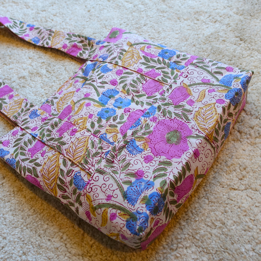 Blockprint Mini Totebag - パープルフラワーブーケ