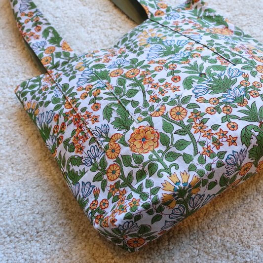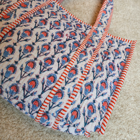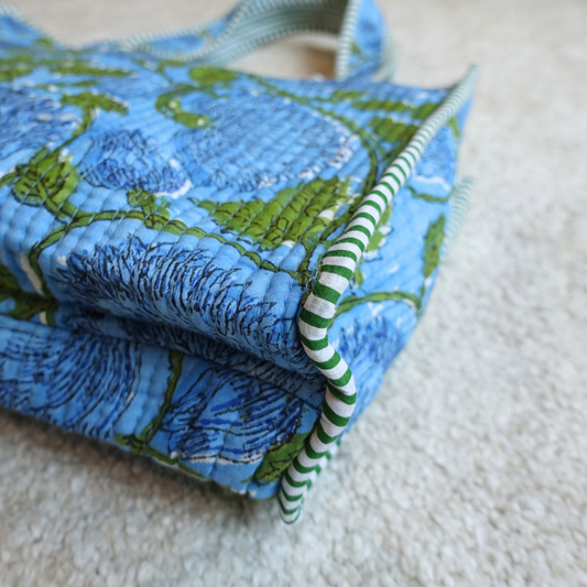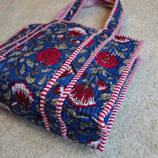 Blockprint Totebag (Handmede in Japan) - ブルーフローラル