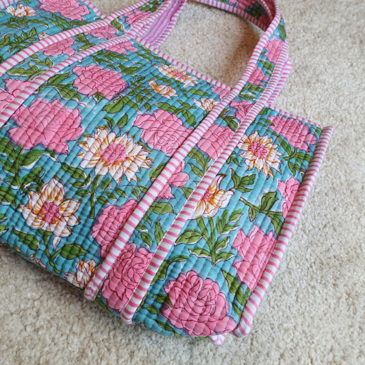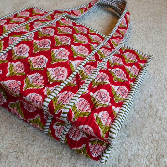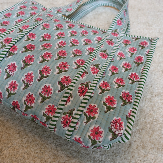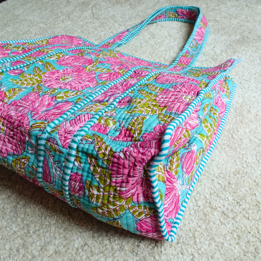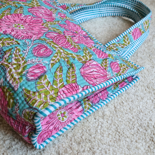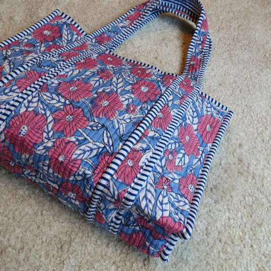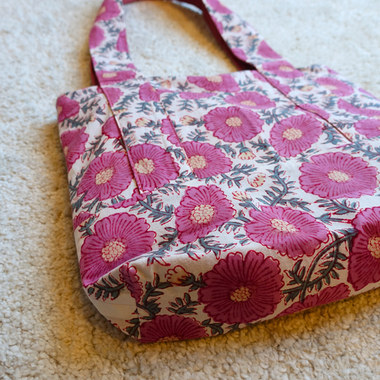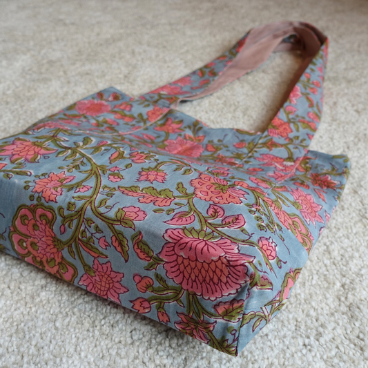 Blockprint Totebag (Handmede in Japan) - ロゼ・フローラル