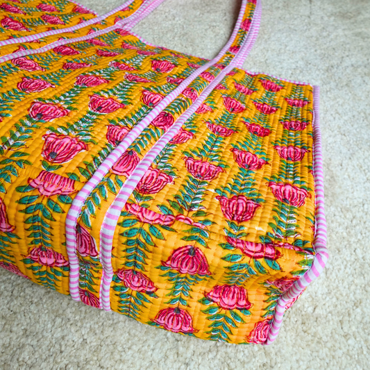 Blockprint Totebag (Handmede in Japan) - イエローピンク