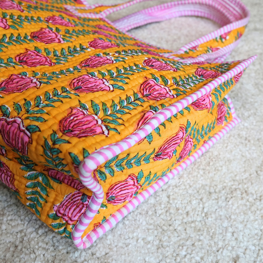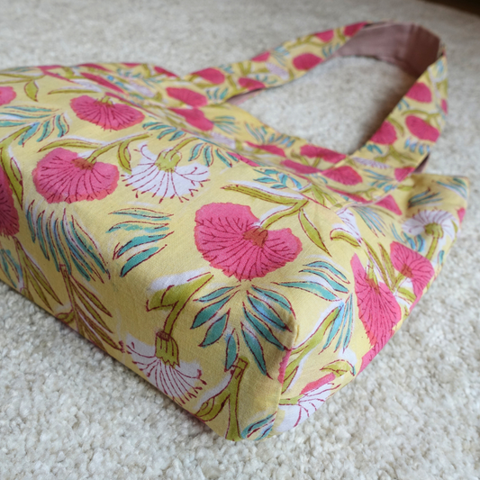 Blockprint Mini Totebag - サニー&ロータスピンク