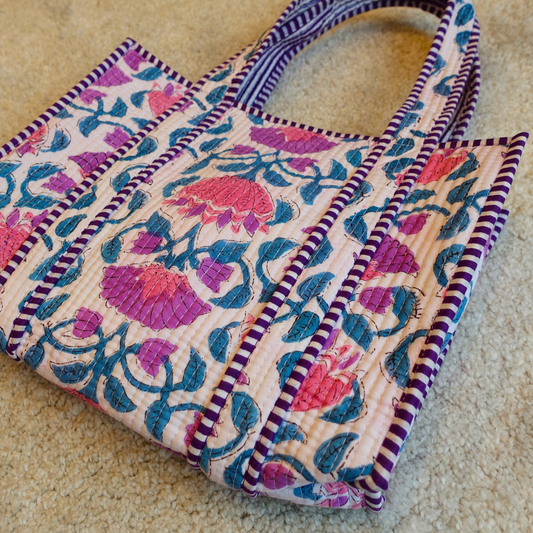 Blockprint Big Totebag - ピンクガーデン