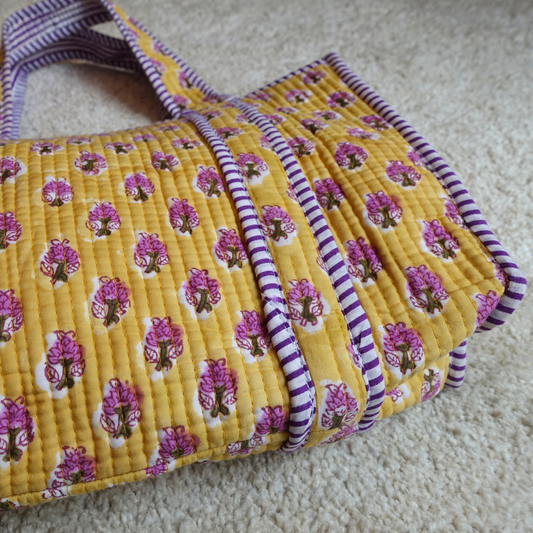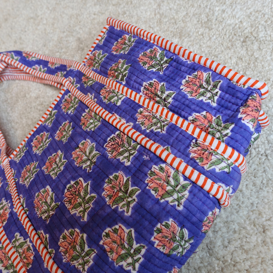 Blockprint Mini Totebag - パープルフラワーブーケ