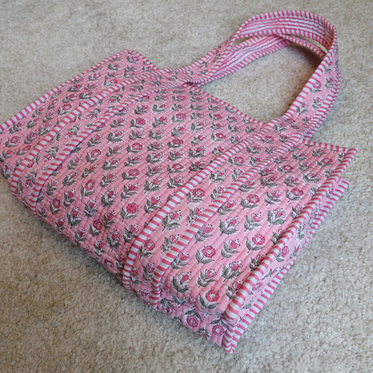 Blockprint Totebag (Handmede in Japan) - ロゼ・フローラル