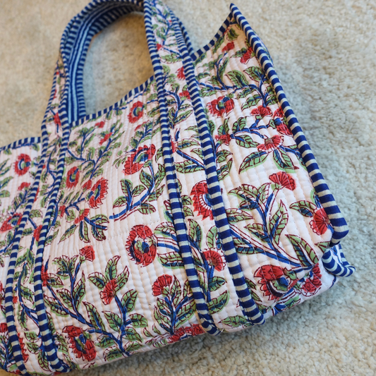 Blockprint Mini Totebag - ブルーガーデン