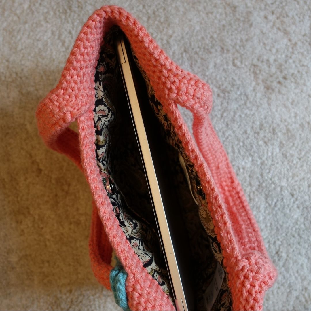 ノートPCがすっぽり収まる実用的なサイズ感で、日常使いから仕事シーンまで対応。柔らかさの中にも安心感のある編み地は、使うほどに手になじみ、風合いが深まっていきます。