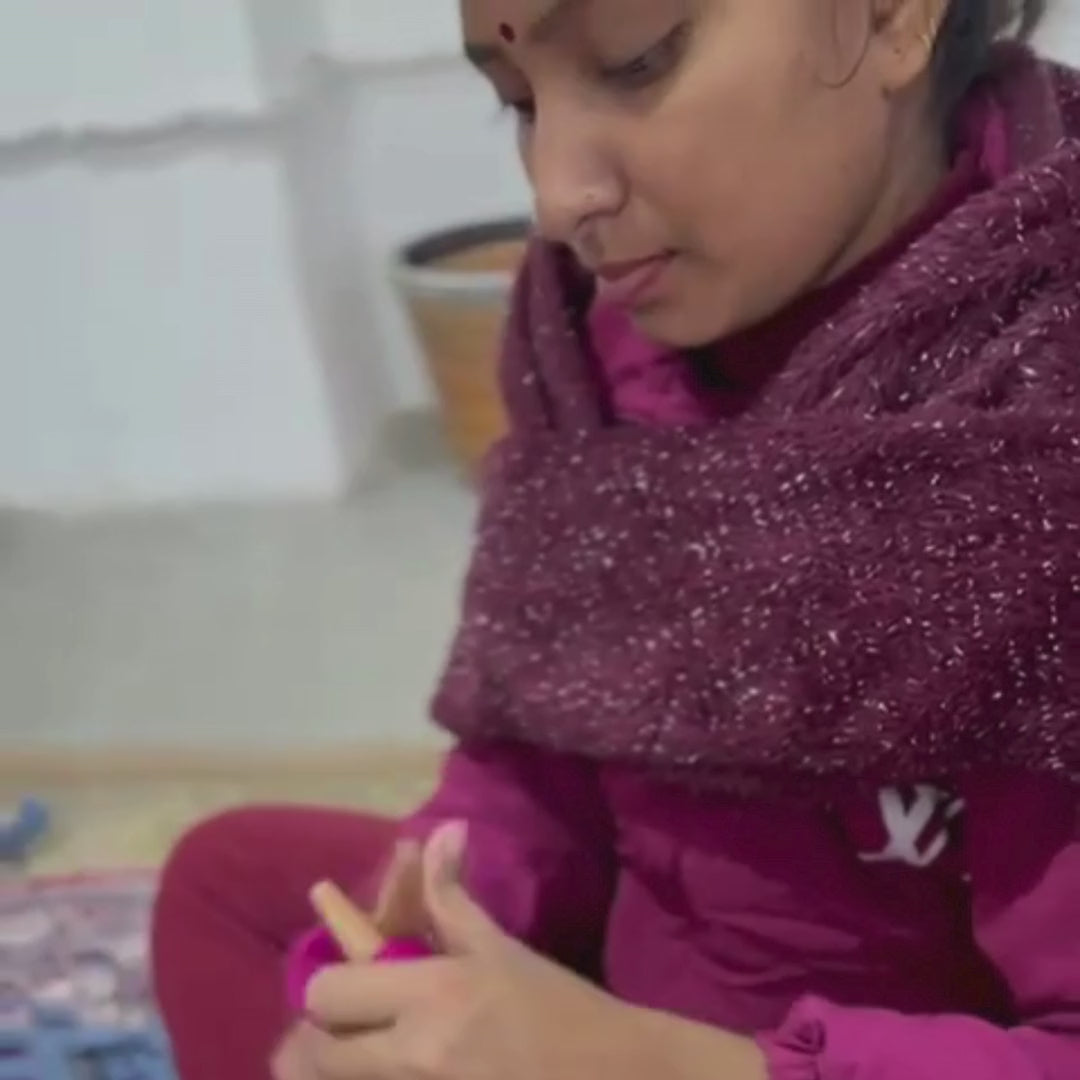 すべてのニットは、インド・パンジャーブ州のアトリエで、25人の女性職人たちによって一点ずつ手編みされています。生涯をかけて編み物に向き合ってきた彼女たちの熟練の技と静かな誇りが、すべての一目に宿ります。