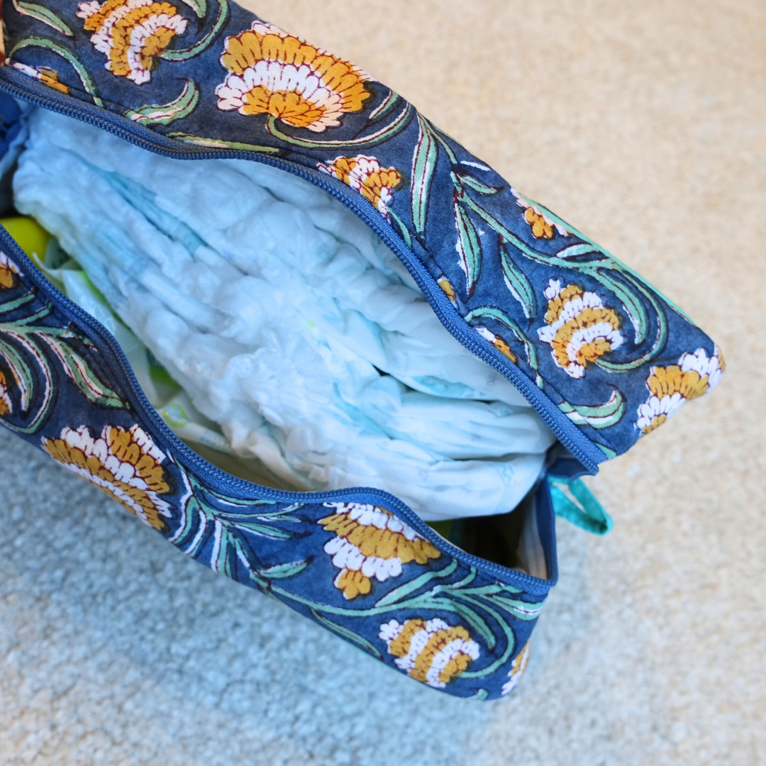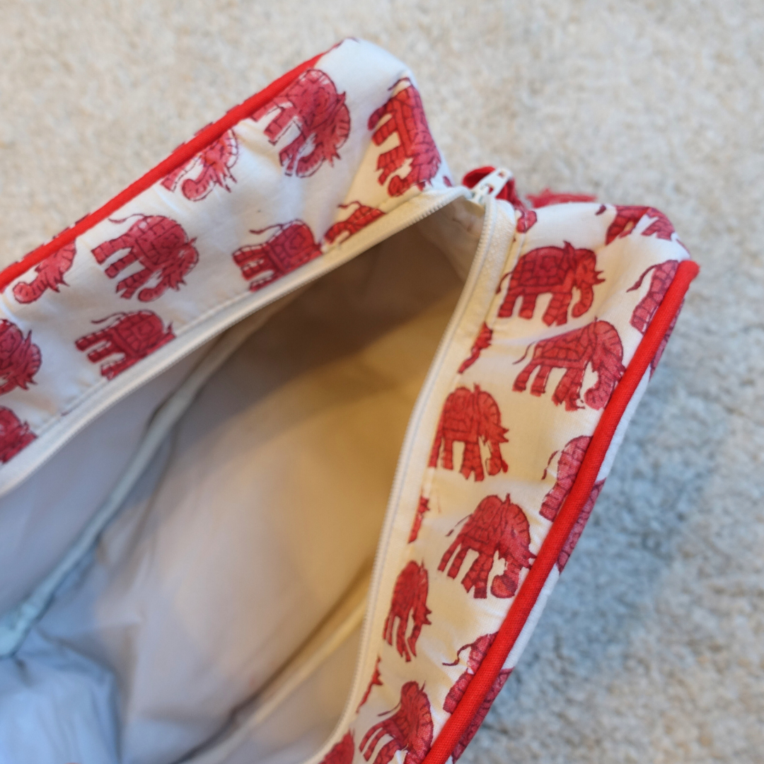 インドのブロックプリントを使ったビックサイズのポーチです。
